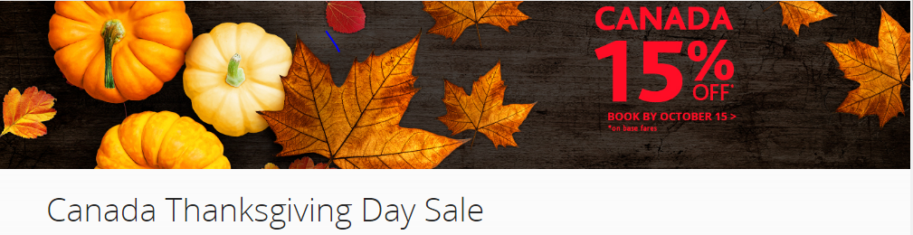 Nuestro socio Air Canadá ofrece esta oferta para celebrar Thanksgiving Canada con un 15% descuento para vuelos de Air Canada desde España y Portugal a Canadá.