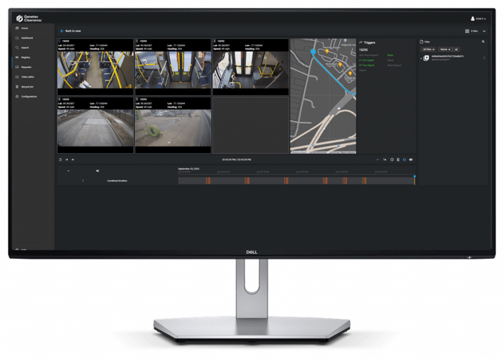 Desde un navegador web, los departamentos internos y externos ahora pueden solicitar grabaciones de las cámaras de la estación y los sistemas a bordo de los vehículos, y revisar videos desde la misma aplicación. Las exportaciones desde sistemas a bordo incluyen datos telemáticos del vehículo, que se pueden revisar junto con la carga de videos. Estos datos, como la velocidad del vehículo, los frenos y la activación de las señales de giro, se pueden compartir con abogados y otras partes autorizadas, lo que ayuda a evaluar una escena y proporcionar un análisis más detallado de los eventos.
