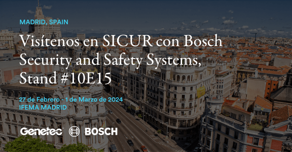 Genetec y Bosch Security and Safety Systems invitan a los visitantes de SICUR 2024 a acercarse a su stand, donde podrán experimentar la unificación de tecnologías líderes en seguridad y explorar cómo estas soluciones pueden marcar la diferencia en la protección de sus organizaciones.